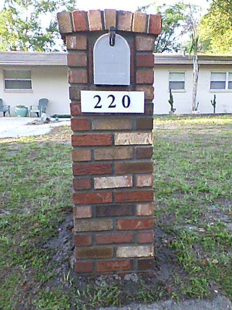 Multicolor brick Only, as shown, due to cost we cannot custom match. Mailbox is 16"wide 20"deep Standard Height Flat or Round Top with dig and pour included.